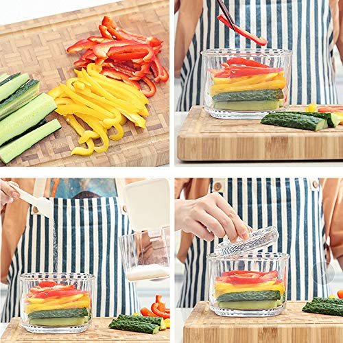 - 【Ventilación automática】: las tapas de los recipientes de vidrio son de ventilación automática, dejan escapar el dióxido de carbono y detienen la entrada de oxígeno, lo que ayuda a mantener frescos los alimentos conservados.