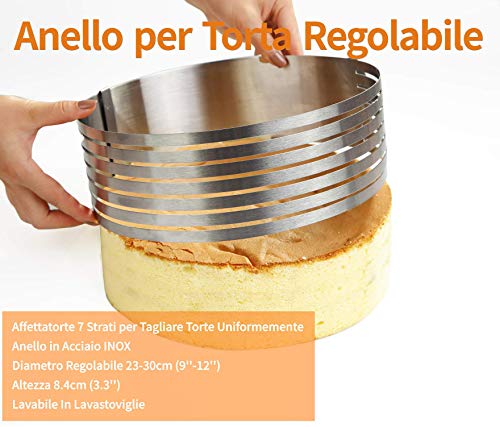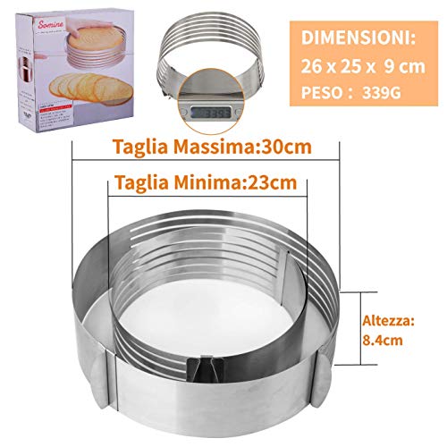 Somine Molde Laminar Tartas de 7 Capas para Cortar los Pasteles - Anillo de Acero Inoxidable con Diámetro Ajustable de 23 cm a 30 cm (9 '' a 12 '')