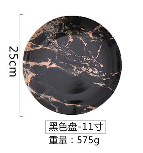 Juego de platos de postre de 8 y 10 pulgadas con incrustaciones de mármol de cerámica, plato de postre, bandeja para tartas al por mayor, 10 Inch Black, talla única