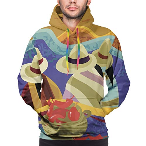 Moshow Sudadera con Capucha para Hombre descansando Mexicanos y una Canasta de Chiles. Serie Mexicana. Ilustración de Vector. Sudadera 3XL
