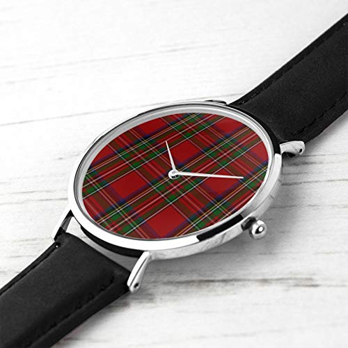 Reloj de pulsera de cuarzo, elegante Royal Stewart Tartan a cuadros impermeables con correa de cuero de la PU reloj clásico casual de acero inoxidable de cuarzo