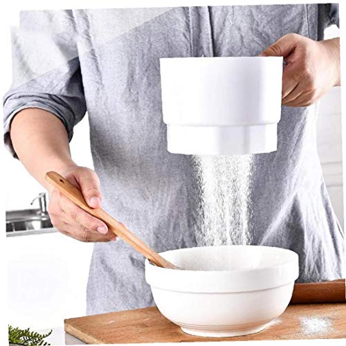 Manual de Polvo de tamiz de harina, Tamiz de azúcar en Forma de Taza de tamiz, Tamizadora de azúcar de la coctelera de plástico para cocinar Hornear, Chocolate, Capuchino y Cacao