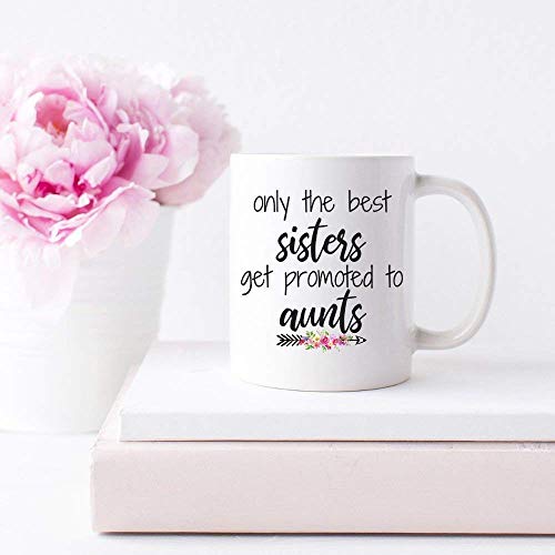 Taza de café de cerámica blanca de 11 onzas, solo las mejores hermanas ascienden a tía, la mejor tía de todos, anuncio de embarazo a la hermana