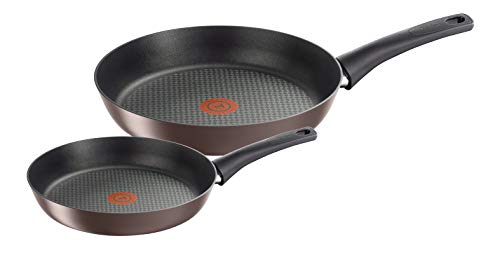 Tefal Chef Set 2 Sartenes 22/28cm antiadherente, apta para todas las cocinas incluida inducción, hasta175° C, Aluminio, Thermo-Spot, Steel, negro
