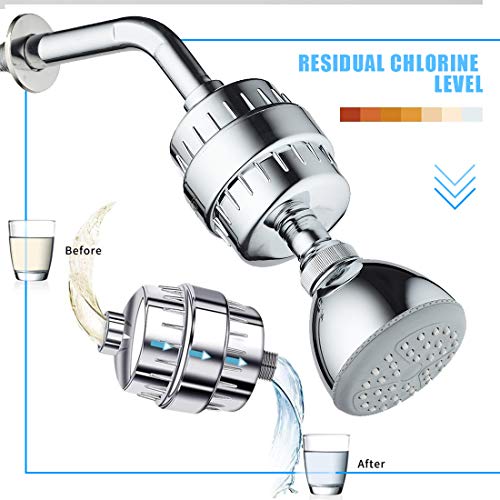 - ✔ Filtro de ducha de 17 etapas: el filtro de ducha de 17 capas limpia el agua e inhibe la multiplicación de bacterias, especialmente la liberación de iones negativos por la bola alcalina. La bola de cerámica reduce el cloro restante en el agua del grifo. el sulfito de calcio elimina el cancerígeno; El carbón activado elimina las impurezas del olor.