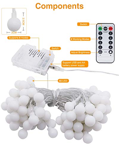 - 【Lo que obtienes】1 pack luces LED de 80 bolas blancas, garantía de devolución de dinero de 60 días, 1 año de garantía sin preocupaciones, servicio al cliente amigable las 24 horas.