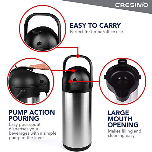 Cresimo 2.2 Litros Airpot Jarra térmica / Termo de acero inoxidable de palanca / 24 horas de retención de calor frío retención