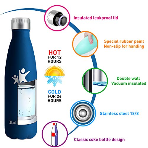 KollyKolla Botella de Agua Acero Inoxidable, Termo Sin BPA Ecológica, Botellas Termica Reutilizable Frascos Térmicos para Niños & Adultos, Deporte, Oficina, Yoga, Ciclismo, (500ml Azul Oscuro)