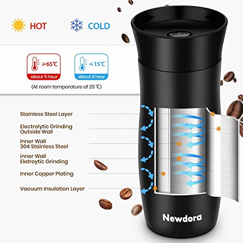 Newdora Termo CafĂ© para Llevar Taza de Viaje con Aislamiento al VacĂo de 380ml de Acero Inoxidable Termos para TĂ© o CafĂ© Tazas TĂ©rmicas a Prueba de Fugas de Doble Pared sin desenroscar la Tapa