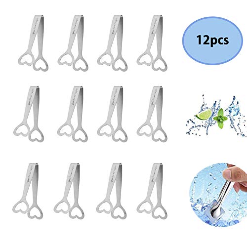 JIASHA 12 Pieza Alicates para Hielo, Acero Inoxidable Mini Pinzas Clip de cafĂ© de terrones de azĂșcar de Pinzas de Helados de chuches para Bar Boda BBQ Fiesta (En Forma de Corazon-Plata)
