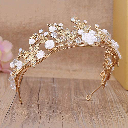 Bowen Jimmy Baroque Gold Flower Leaf Tiara Crowns Wedding Hair Vine Jewelry Bridal Headpiece,Gold