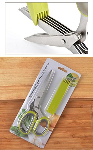 Tenta Kitchen Tijeras para hierbas con pelador multiusos (juliana, frutas, verduras), 5 cuchillas de acero inoxidable, funda y cepillo de limpieza