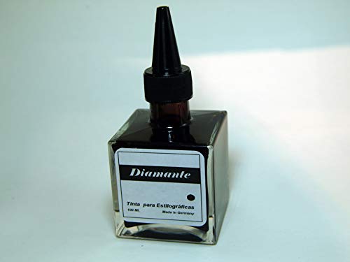 Tinta AZUL para Pluma Estilográfica y Plumillas - Tintero de Cristal Tamaño grande 100ml de tinta - DIAMANTE (AZUL)