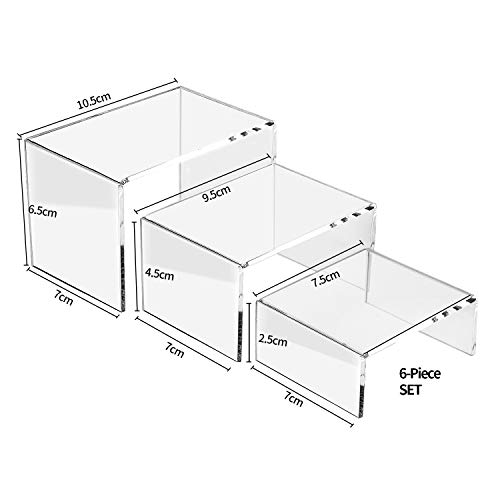 - Tamaño :Paquete incluye 6 piezas expositor metacrilatos,3 diferente talla,10.5*7*6.5cm, 9.5*7*4.5 cm,7.5*7*2.5cm .cada tamaño incluye 2 piezas