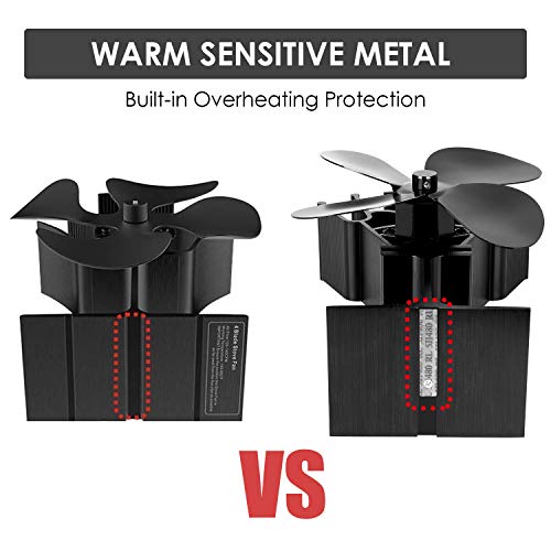 Femor Ventilador de Estufa de 4 Palas, Ventilador de Estufa de Calor para Estufas de Leña/Leña/Chimenea, Funcionamiento silencioso de 50 ° C a 80 ° C, , con Aspa de Repuesto