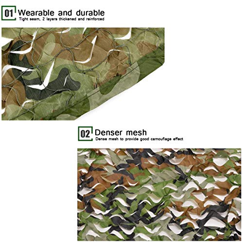 - ★ Los usos de las redes de camuflaje son infinitos,Cámping,Caza,Actividades militares,Persianas de pato,Juegos de paintball,Quitasol,Persianas De Caza, Vallas,Víspera de Todos los Santos,Fiestas,Decoración hogareña,Observación de aves,Cubierta de coche,Casas en los árboles, etc.