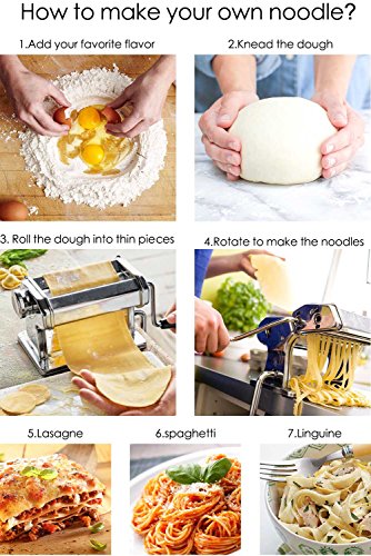 - 【 Criadora rápida de lujo – Simplifica el trabajo de hacer tu propia pasta nutritiva en casa, mucho más fácil que a mano. Puedes conseguir ese sabor y textura frescos y perfectos más a menudo, incluyendo fettuccina, lasagne, idioma, espaguetis, vermicelli, pelo de ángel, tagliatel.