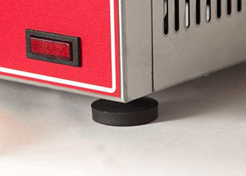 - 3 Mandos: 1 INTERRUPTOR ON/OFF, 1 REGULADOR de la velocidad de la cinta transportadora y 2 REGULADORES de potencia (uno para cada resistencia: superior e inferior)