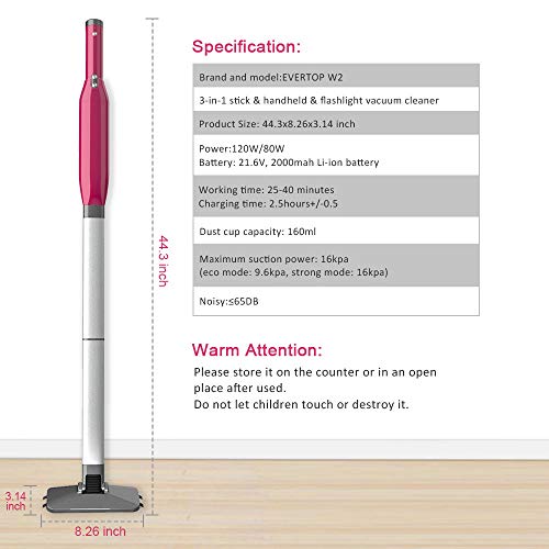 - Súper Fácil de Usar - La aspiradora de varilla inalámbrica es liviana y compacta, fácil de usar con una mano; equipado con una herramienta para ranuras larga y una boquilla para pisos diseñada para eliminar el pelo y los escombros de las mascotas de manera conveniente, las tareas domésticas tediosas se vuelven más fáciles.