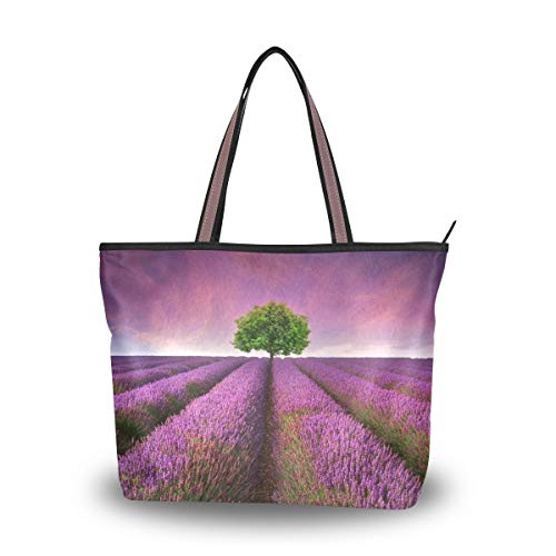 Bolso de mano para mujer, estilo de lavanda, con cremallera, de gran capacidad