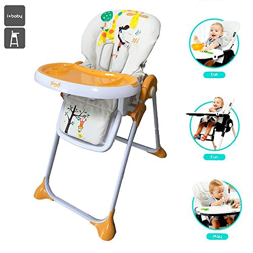 Trona para bebes Ibaby Pod Giraffe. Trona Plegable Multiposiciones. Altura regulable en 6 posiciones. Doble bandeja extraible. Asiento reclinable en 3 posiciones.