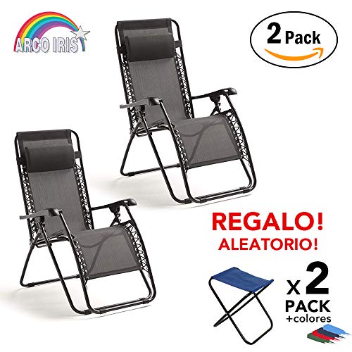 Arcoiris - Tumbona Gravedad Cero Tumbona Plegable Multiposiciones, Jardin,Terraza, 4 Colores (2Pack + 90218, Gris)