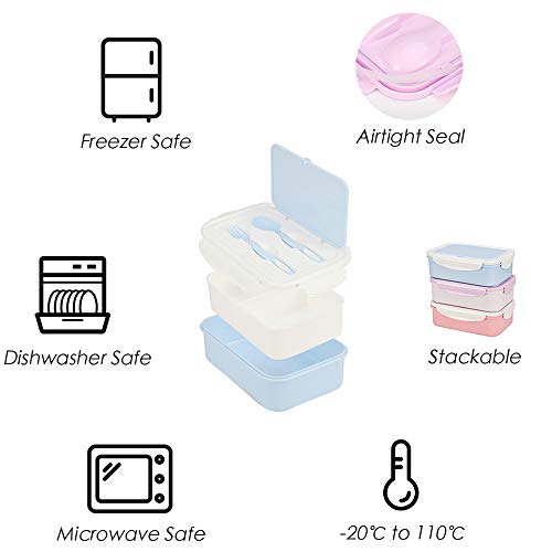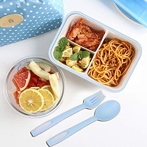 1050ml Caja de Almuerzo de Plástico Azul, Caja de Bento con 3 Compartimentos y Cubiertos (Tenedor y Cuchara), Fiambreras Caja de Alimentos Ideal para Almuerzo y Bocadillos para Niños y Adultos