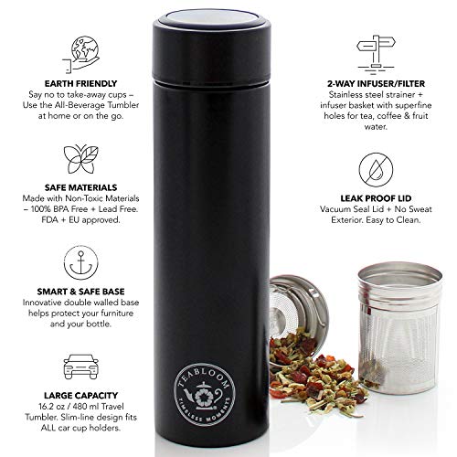 Teabloom Vaso De Bebidas Multiusos - 480 Ml/Botella De Agua con Aislamiento De Metal Cepillado - Vaso De Té - Botella De Viaje - Máquina para Hacer Cerveza Fría