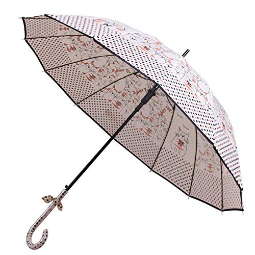 RH-HPC Impermeable a Prueba de Agua Paraguas semiautomático Gato Lindo Mango Largo Dulce del Arco Paraguas Creativo Paraguas (Color : Beige)