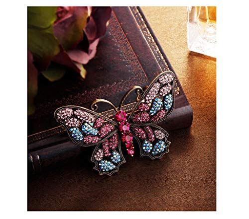 - ❤ Características: Este diseño de broche es exquisito y único.El borde de bronce está diseñado con una forma de mariposa.El diamante de color artificial está hecho a mano con delicadas alas de mariposa.El glamour agregará tu apariencia y se abrochará de forma segura.Este tipo especial de broche será llamativo.