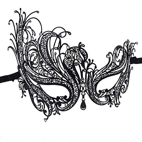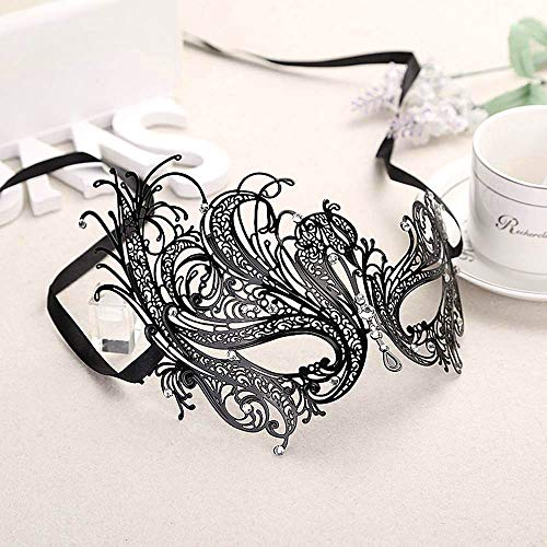 Ndier - Máscara veneciana de mujer con diamante de metal fino, máscara de encaje sexy de Halloween para fiestas de máscaras, bodas, Mardi Gras, Carnaval y danza veneciana, color negro