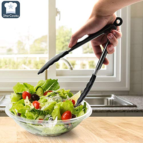 - Juego de 10 utensilios de silicona para cocinar: cuidadosamente seleccionados para manejar las tareas de cocina más frecuentes. Este juego incluye: espátula ranurada, cuchara ranurada, cuchara para servir, cucharón, puré de patatas, pinzas (12 pulgadas).