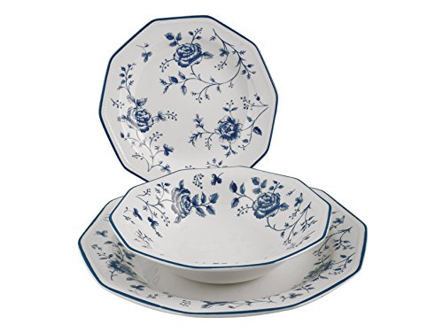 Churchill Rose Earthware - Vajilla (18 piezas), color blanco y azul