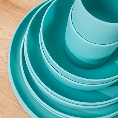 - SERVICIO PARA 2: Incluye 2 platos de cena (10.78 "), 2 platos de postre (8.07"), 2 tazones para sopa / ensalada (31oz), 2 tazas (16 oz). Hecho de una alta proporción de fibra de bambú. El bambú es renovable, naturalmente antibacteriano, de alta densidad, libre de BPA, ecológico y biodegradable.