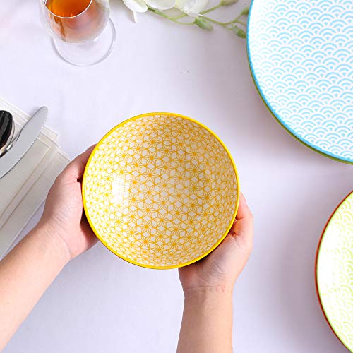 Juego de Platos Hondos - Vajilla Platos para Pasta - Set de Platos Soperos - Juego de Platos de Ceramica de Colores - Vajilla Completa 6 Personas - 1L - 24cm