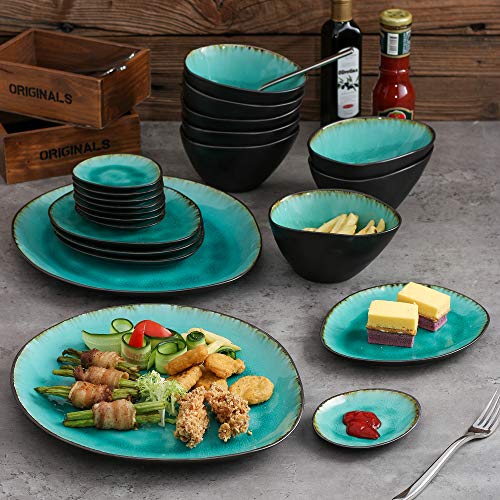 vancasso Serie Aqua Juego de Vajillas Esmaltadas Gres Vajilla Irregular de 22 Piezas Azul Turquesa, para 8 Personas, 8 Cuencos 8 Plato de Salsa, 4 Platos y 2 Platos Grandes