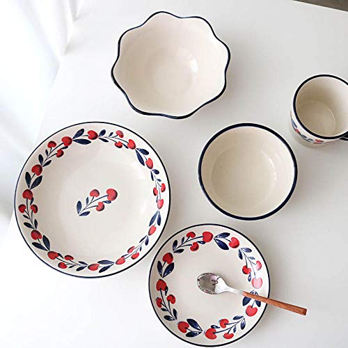 Platos Baya Cereza Vajilla De Cerámica Doméstica Pintada A Mano Bajo En Vidrio Ensalada De Fideos De Arroz Taza De Cereza Baya Grande Plato Hondo (Con Líneas Oscuras)