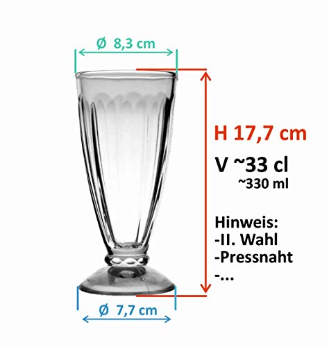 VonShef Juego de 2 Vasos de Helado de Batido de Leche de estilo Americano - Cristalería de fiesta estilo retro