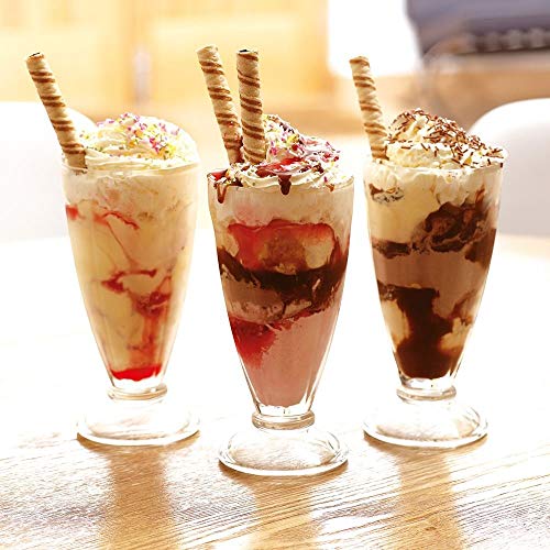 - Estas copas contemporáneas cuentan con un diseño de remolino para un toque moderno pero elegante. El cristal transparente es ideal para mostrar los batidos y una gran variedad de otros postres deliciosos.