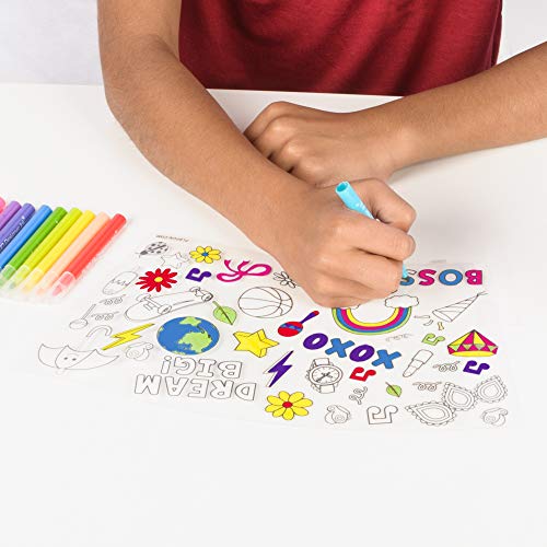 - ¡CON MUCHO VALOR AÑADIDO! - El vaso para niños con tapa y paja viene con tres recubrimientos prediseñados para colorear - 1 hoja de pegatinas de gemas brillantes - 10 rotuladores de colores vivos - ¡y un estuche para colorear de regalo con diseños de "PAZ" y "AMOR" en cada lado! – Las tres diferentes láminas para colorear pre-diseñadas para el vaso con caña se pueden cambiar - ¡Podrás adaptar el diseño del vaso de plástico con pajita a tu gusto cuando quieras!