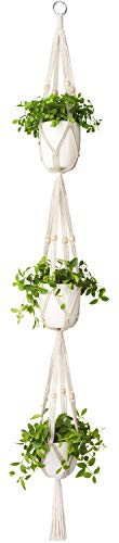 Mkouo Macramé Suspensión de Plantas 3 Niveles Interior Outdoor Cesta Colgante de Maceta Cuerda de Algodon with Beads 178cm