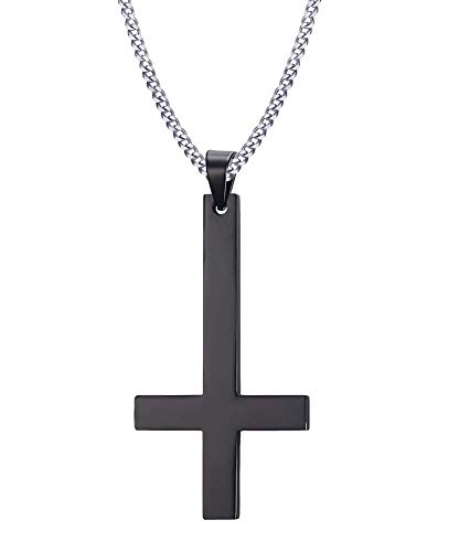 YABINI - Collar con colgante de cruz invertida simple de plumón de acero inoxidable para hombres y mujeres, chapado en negro y oro, cadena de 61 cm