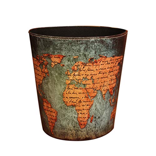 JUNGEN Bote de Basura de Retro con Patrón de Mapa del Mundo Cubo de Basura de Cuero PU Papeleras de Redondo para Cocina Dormitorio Salon Baño Oficina Reciclaje de Basura para Hogar