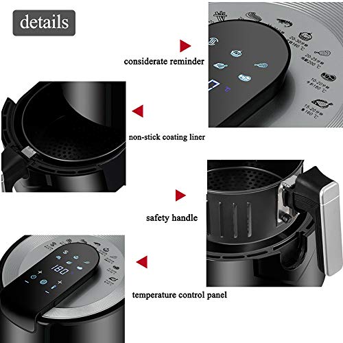 - ★ seguro de usar: antiadherente freidora con mango fresco toque lo hace más seguro de entender. Apagado automático prevenir el sobre cocinado. la aprobación de ETL. BPA y PFOA-Libre recubiertos de teflón. Esta freidora de aire horno eléctrico podría ser su ayudante de cocina perfecto para la encimera.