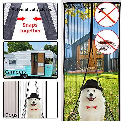 - ☀【Elegante y Duradero】:-La mosquitera puerta magnetica está hecha de tela de alta calidad bien cosida, con resistencia al desgarro y al desgaste. La cortina que cuelga en la puerta se ve elegante y de alta calidad, mejorando su calidad de vida.