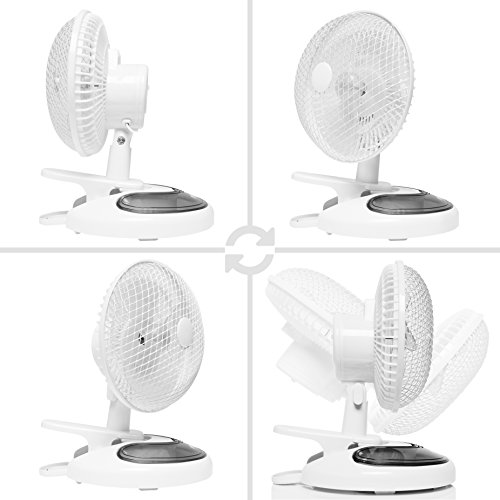 Duronic FN15 Ventilador de sobremesa 15W con base fija + clip – Mini ventilador portátil y ligero con aspas de 20cm, cabezal giratorio y 2 velocidades – Ideal para oficina, escritorio