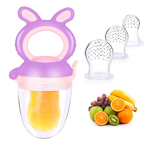 Oladwolf Chupete de Bebé, Chupete de Fruta Fresca con Reemplazo de Chupete de Silicona de 3 Frutas en 3 Tamaños, Mordedor de Bebé sin BPA Para Verduras Comida Para Bebés Comida Complementaria (Morado)