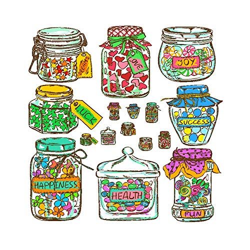 - Jarros para almacenar dulces. Incluye 15 frascos decorativos de cristal transparente. Cada frasco tiene una tapa de rosca para cerrarla.