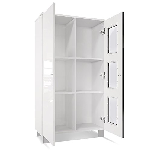 Vladon Vitrina Denjo, Cuerpo en Blanco Mate/frentes en Blanco de Alto Brillo
