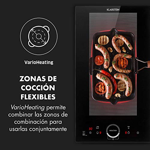 Klarstein Cucinata Cocina de inducción - 2 zonas de cocción, Rendimiento total de 3.100 W, 10 niveles de 200-1.300 W, 60-240 °C, Superficie de vidrio, Panel de control táctil, Pantalla LED, Negro